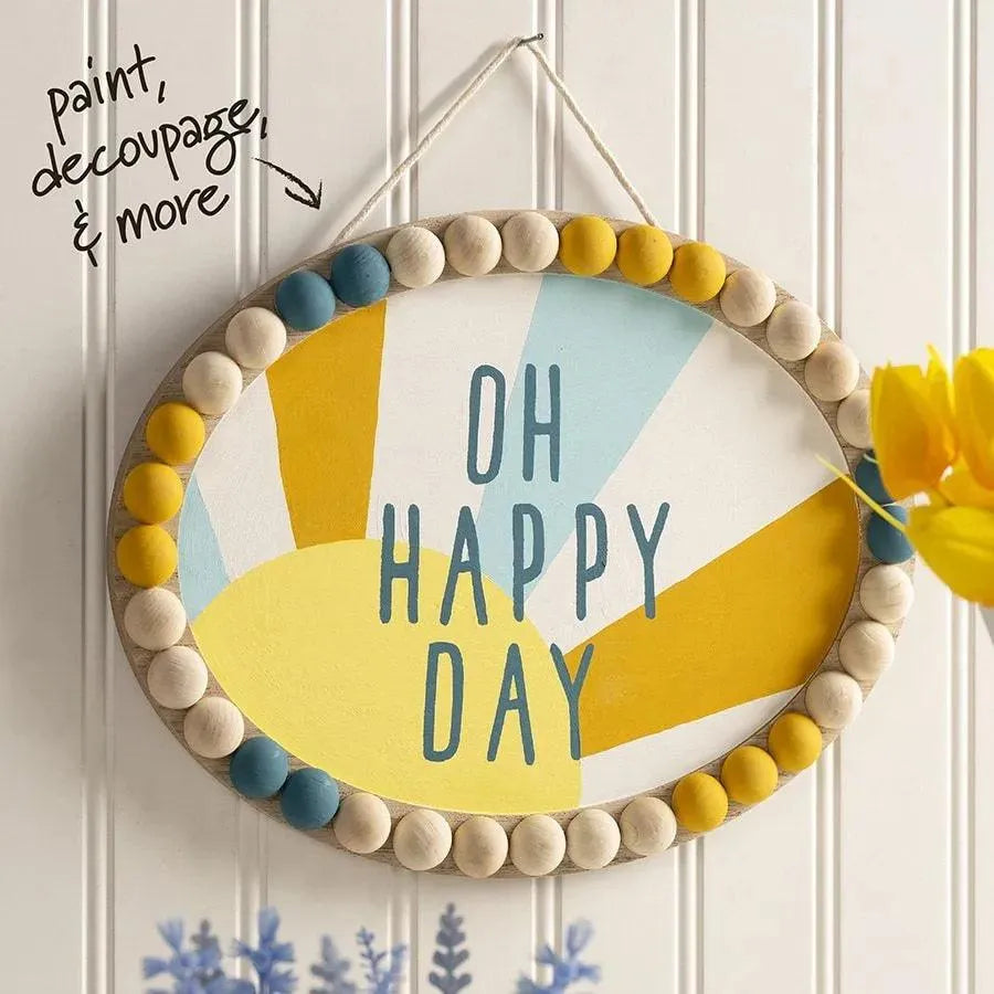 Add a perfect finishing accent to your home décor with the versatility of the Plaid Oval Plaque with Beaded Handle. This unfinished wooden plaque has a large oval surface with a wood veneer pattern and a beaded edge that is perfect for creating personalized projects. Easily basecoat, stencil, stamp, decoupage, or wood burn this plaque to create a unique home décor piece. The plaque includes a jute rope hanger for added fun to your space. Enjoy the limitless possibilities for personalizing and customizing the Plaid Oval Plaque with Beaded Handle.